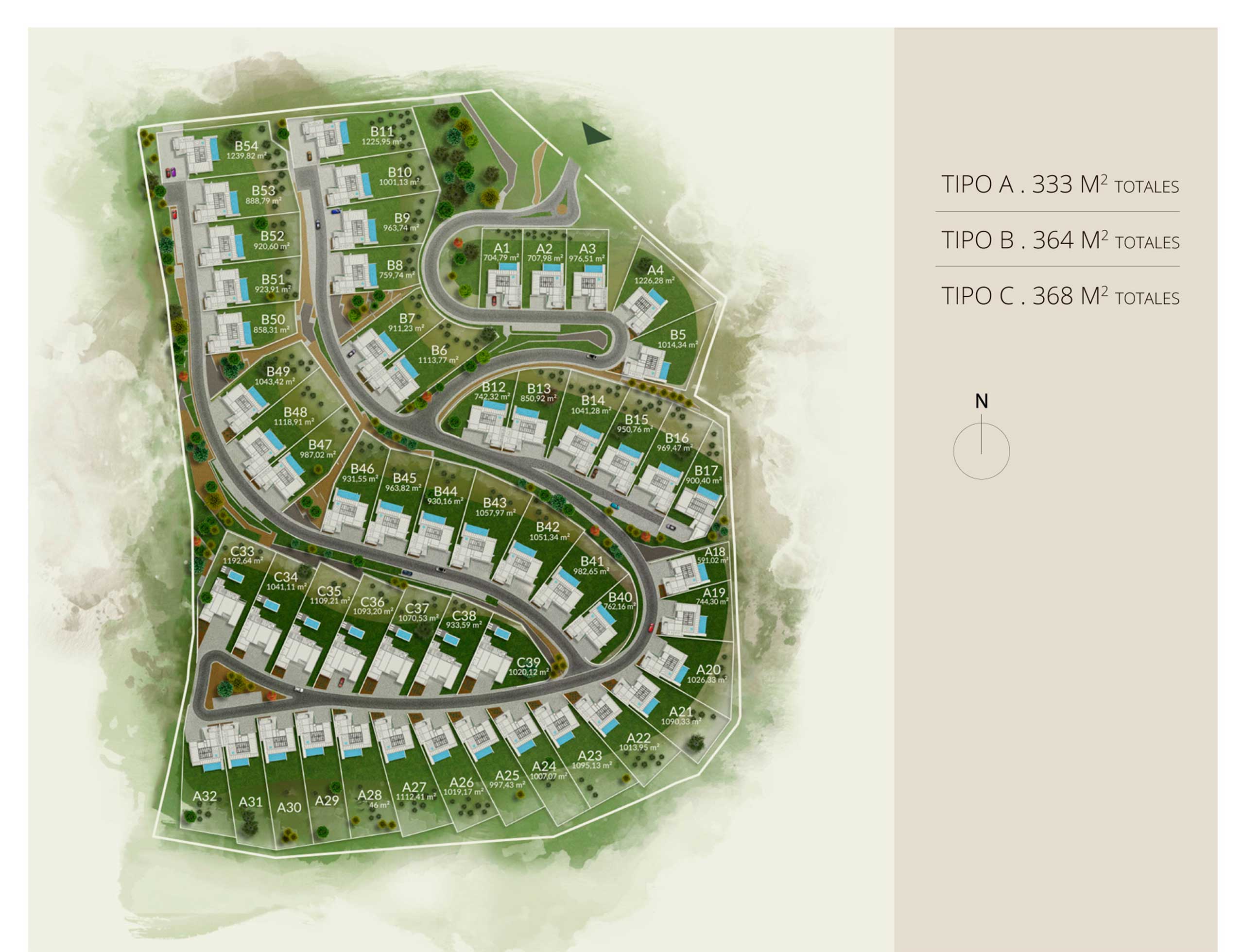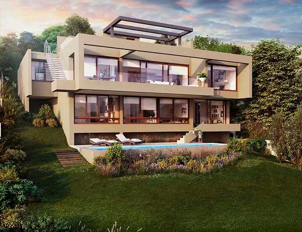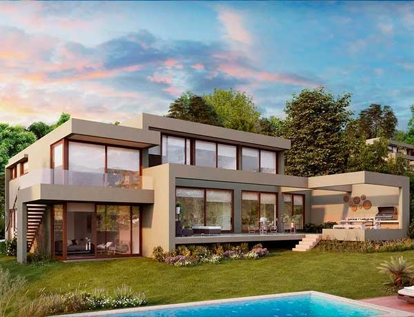 Casas de moderna arquitectura y nobles materiales, en sitios desde 700 m2 hasta 1.200 m2.